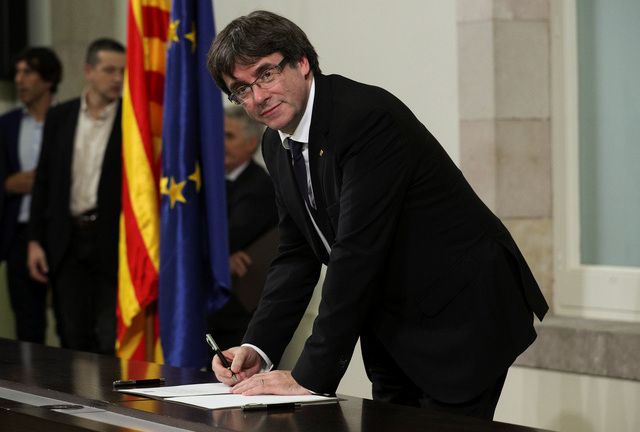 Chính phủ Tây Ban Nha không công nhận bản tuyên bố độc lập của xứ Catalonia do Thủ hiến Carles Puigdemont và các chính khách của khu vực này ký hôm 10/10.