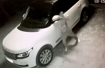 Chiếc camera an ninh đã ghi lại hình ảnh tên "đạo tặc" bẻ trộm 2 gương của chiếc Ranger Rover sang trọng.