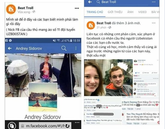 Thành viên Voz kêu gọi đánh sập chuỗi fanpage Beatvn, do trang này khích nhiều người Việt vào Facebook của tiền đạo U23 Uzbekistan sau trận chung kết để trút giận.