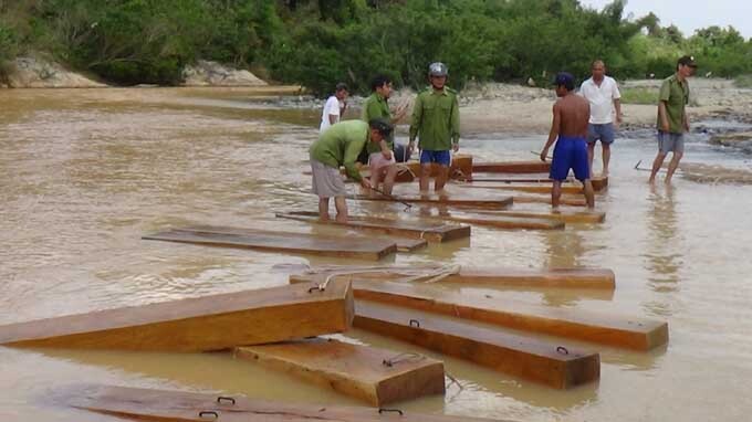 Trên 6 bè gỗ có 34 lóng gỗ kiền kiền (thuộc nhóm IIA) với khối lượng khoảng 3m3. Nhóm lâm tặc đã nhanh chóng nhảy sông trốn thoát.