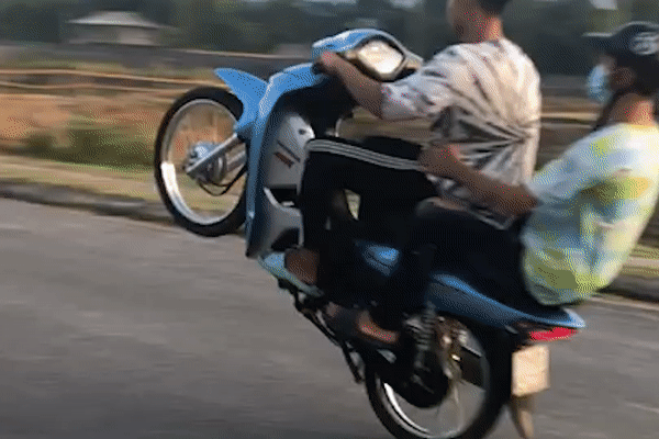 Theo cơ quan công an, hành vi điều khiển xe máy đi bằng một bánh của các đối tượng là nguy hiểm cho xã hội, gây mất an ninh trật tự, an toàn giao thông…