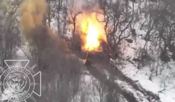 Quân đội Nga phóng máy bay không người lái Lancet, xóa sổ một thiết giáp của Ukraine ở mặt trận thuộc khu vực Kharkov.