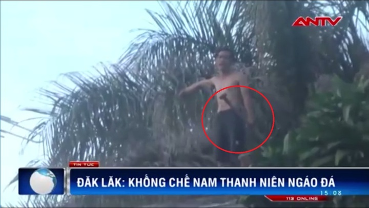 Một đối tượng có biểu hiện ngáo đá, tay cầm dao dựa và gậy sắt nhảy qua các mái nhà ở phường Thành Công (TP Buôn Mê Thuột, Đắk Lắk).