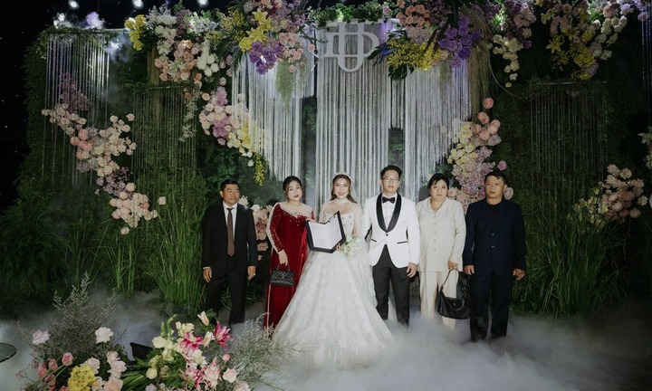 Ngay tại đám cưới, ba mẹ cô dâu tặng cặp đôi một khách sạn 3 sao có giá trị khoảng 120 tỷ đồng và sổ đỏ đã được sang tên trước đó.