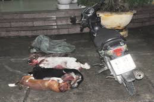 Ngoài ba con chó đã chết đựng trong bao tải, công an còn phát hiện trên xe của hai “cẩu tặc” có một bịch bột ớt lớn làm hung khí chống lại lực lượng truy bắt.