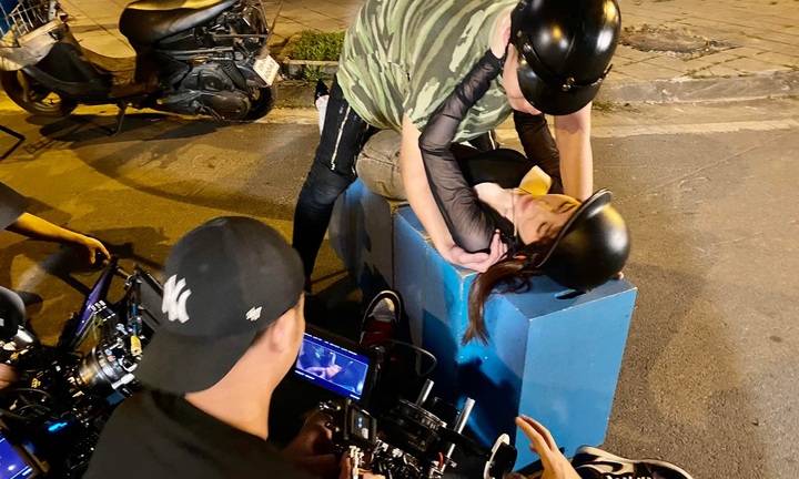 Để có cảnh khóc trong mưa lãng mạn và nhiều cảm xúc, Phan Minh Huyền đã phải chịu lạnh dầm mưa suốt 4 tiếng.