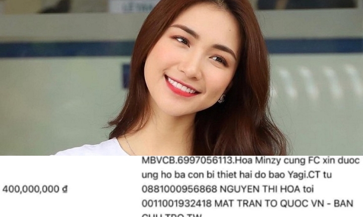 Trên giấy tờ, số tiền ủng hộ lũ lụt của Hòa Minzy được chứng thực chính xác con số mà người đẹp đã công khai trước đó là 400 triệu đồng.
