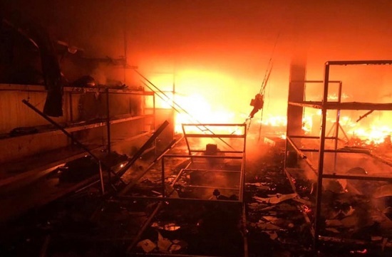 Do bên trong có nhiều vật liệu dễ cháy nên ngọn lửa nhanh chóng lan rộng, thiêu rụi cửa hàng điện máy, thiệt hại ước tính khoảng 2 tỷ đồng.