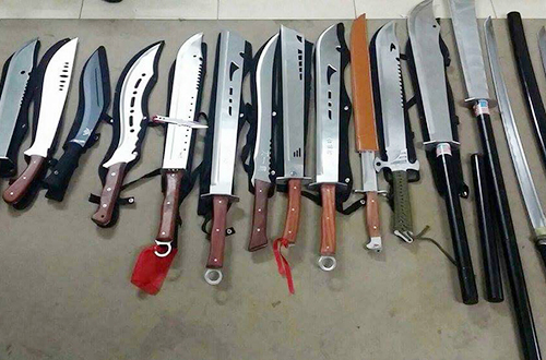 Kho vũ khí gồm khoảng 3.000 đao kiếm, súng bắn bi, súng điện… được cặp vợ chồng Long – Diệp vận qua nhiều địa bàn như Q.Thủ Đức, Q.Gò Vấp rồi chuyển về kho tại Củ Chi.
