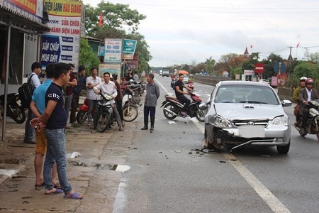 Vào khoảng 13h45 chị Tuyên điều khiển xe máy mang BKS:38N3-9951 chở theo 2 con nhỏ đi học. Khi đến ngã tư thuộc xã Cẩm Trung, xe máy do chị Tuyên điều khiển va chạm với xe ô tô mang BKSL 38H-9036 do anh Hoàng Đinh Hải ( SN1987, trú xã Kỳ Đồng, huyện Kỳ Anh, tỉnh Hà Tĩnh) điều khiển chạy hướng Nam- Bắc.