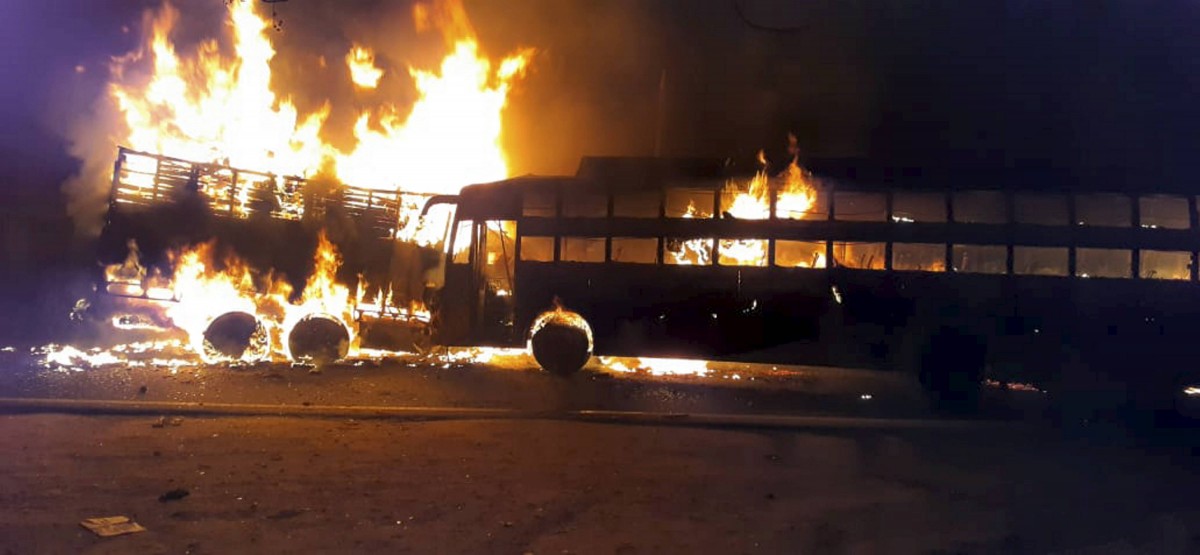 Vụ va chạm khiến chiếc xe buýt bốc cháy, dữ dội. Ảnh: indiatoday.in |