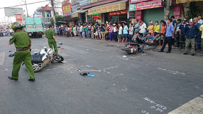 Vụ tai nạn đầu tiên xảy ra khoảng 15h30 chiều 5/4 khi xe buýt chạy trên quốc lộ 13 (hướng từ Bến Cát về TP Thủ Dầu Một) tới ngã tư giao cắt với đường Lê Chí Dân (P.Hiệp An) dụng xe máy do anh Phạm Thanh S. (25 tuổi, quê Đồng Tháp) cầm lái làm anh chết tại chỗ.