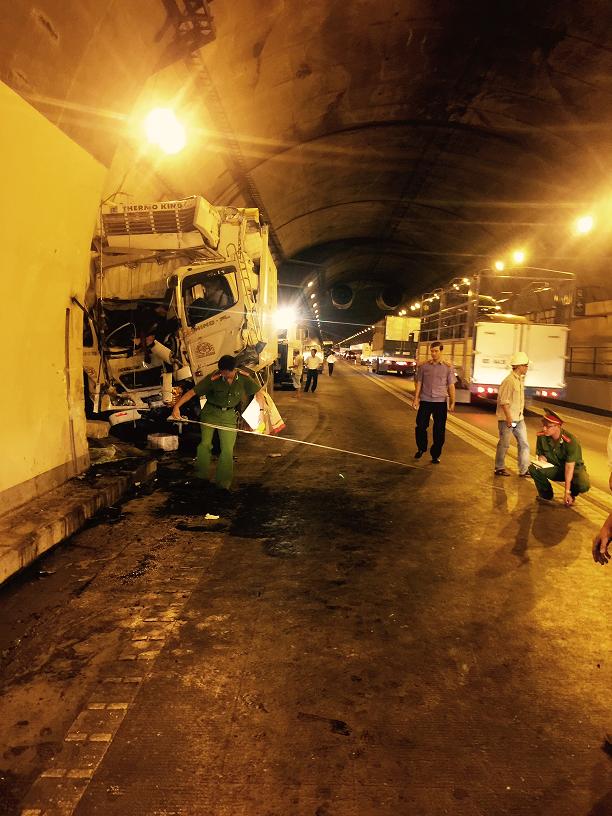 Tuy nhiên, khi xe tải này chạy đến Km1+993 (cách cửa hầm phía Bắc khoảng 500m) thì xe này đâm vào tường hầm.