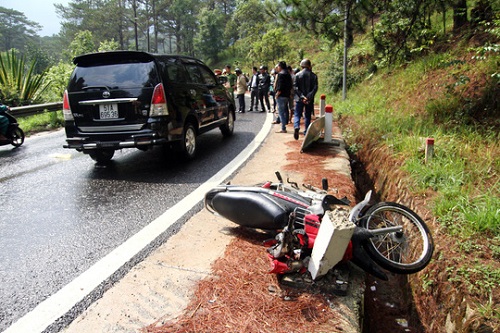 Do đường trơn trượt lại đi với tốc độ cao, xe máy lưu thông qua đèo Prenn đã đâm trực diện vào ô tô đi ngược chiều khiến 1 người tử vong, 1 người nguy kịch.