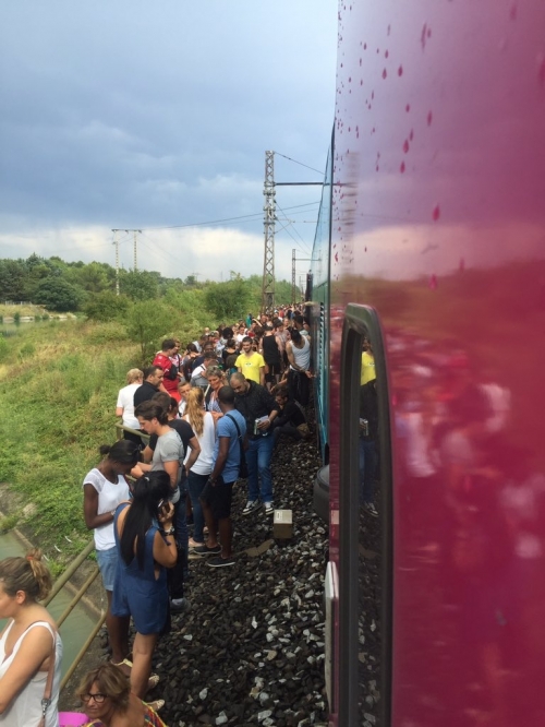 Rất đông hành khách bị mắc kẹt trên khoang tàu chờ nhân viên cứu hộ |