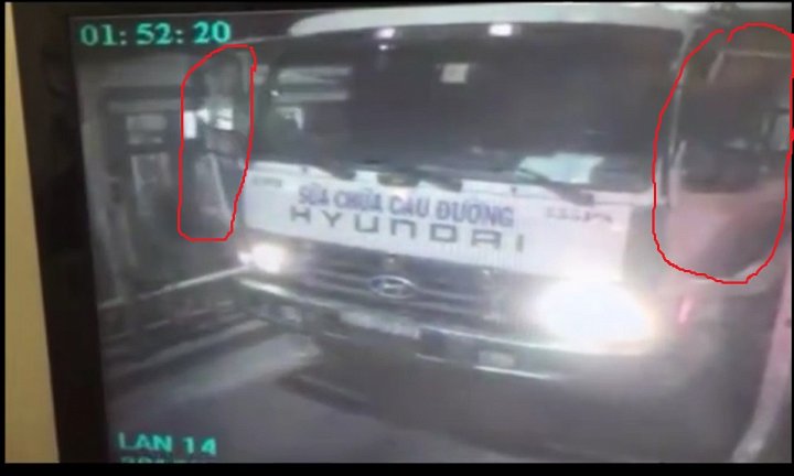 Trong lúc tài xế mở cửa xe để che mắt nhân viên thu phí, phụ xe cũng mở cửa đi trộm tiền. Ảnh cắt từ clip |