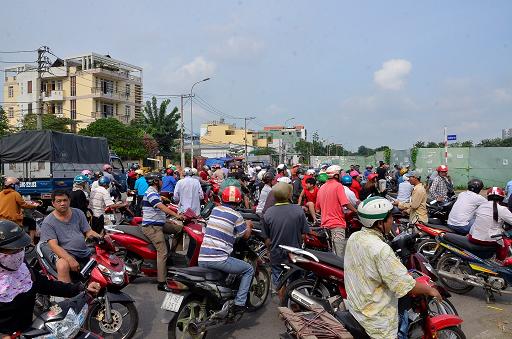 Rất đông người dân hiếu kỳ tập trung quanh khu vực để theo dõi vụ việc |