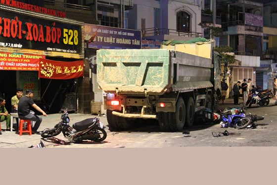 Theo đó, khoảng 22h45 ngày 1/3, tài xế Giàu điều khiển xe ben mang BKS 51D-162.78 lưu thông với tốc độ cao trên đường Phan Văn Trị hướng từ quận Gò Vấp về quận Bình Thạnh. Khi vừa cách giao lộ với đường Nguyễn Thái Sơn (quận Gò Vấp) khoảng 300m thì tài xế Giàu phát hiện 1 chiếc xe máy lao từ 1 con hẻm lao ra đường. Bất ngờ né chiếc xe máy, xe ben đã tông vào dải phân cách giữa đường.
