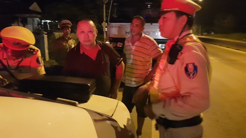 Lực lượng chức năng tiến hành lập biên bản nam tài xế. Ảnh: PLO |