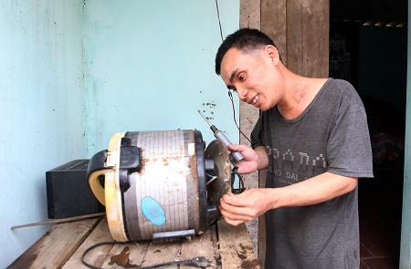 Anh Bùi Xuân Trước sửa chữa đồ gia dụng cho bà con trong thôn, xóm |