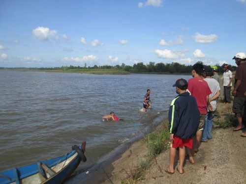 Đưa thi thể một nữ sinh bị đuối nước lên bờ trong một vụ chết đuối trước đó. (Ảnh: Báo Thanh niên). |