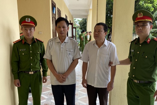 Hai cán bộ xã tại Thanh Hóa thời điểm bị công an bắt giữ. Ảnh: Pháp luật TP.HCM |