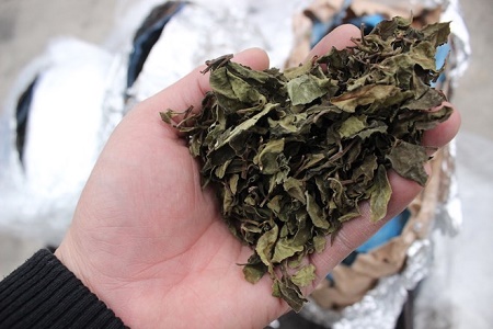 Lá khô nghi là lá "Khat" để sản xuất ma túy đá được cơ quan chức năng phát hiện. (Ảnh: Tổng cục Hải quan) |