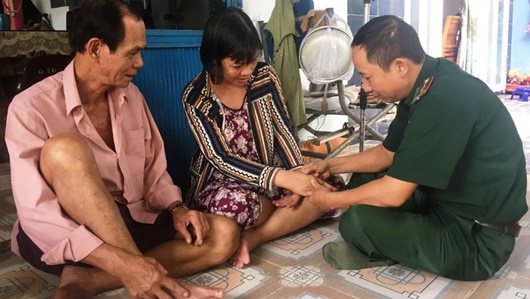 Đại úy Ninh Công Khánh chữa bệnh cho người dân làng biển. Ảnh: Pháp luật Việt Nam |