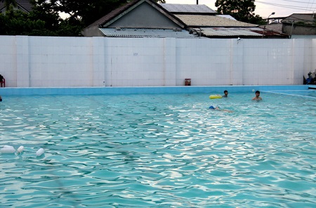 Hồ bơi nơi em T. bị đuối nước (Ảnh: báo Dân trí) |