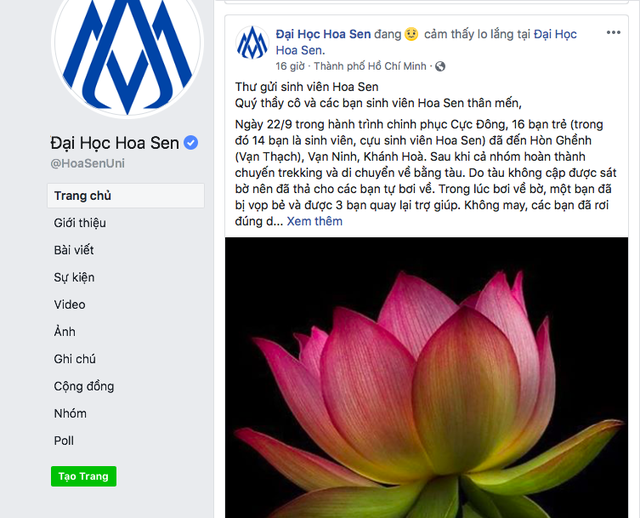 Theo đó, trong thư, bà Quy bày tỏ sự cố đáng tiếc với cựu sinh viên của trường. Nội dung bức thư nêu “Ngày 22/9 trong hành trình chinh phục Cực Đông, 16 bạn trẻ (trong đó 14 bạn là sinh viên, cựu sinh viên Hoa Sen đã đến Hòn Ghềnh (Vạn Thạch), Vạn Ninh, Khánh Hòa. Sau khi cả nhóm hoàn thành chuyến trekking và di chuyển về bằng tàu. Do tàu không cập được sát bờ nên đã thả cho các bạn tự bơi về. Trong lúc bơi về bờ, một bạn đã bị vọp bẻ và được 3 bạn quay lại trợ giúp. Không may, các bạn đã rơi đúng dòng nước xiết. Mặc dù được người dân khẩn trương cứu giúp nhưng sinh viên một trường đại học khác là bạn P.T.T.H, đã không qua khỏi.