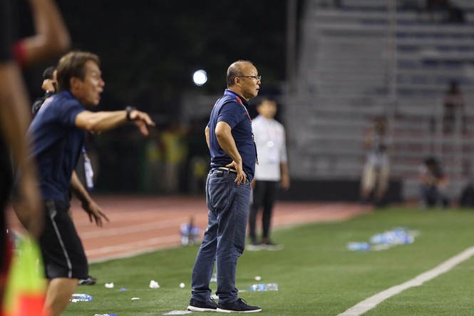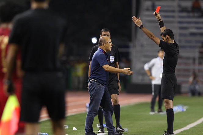 Sau khi có lời qua tiếng lại, "vị vua áo đen" rút ra tấm thẻ đỏ cho nhà cầm quân 60 tuổi, đồng nghĩa với việc thầy Park bị truất quyền chỉ đạo trong phần còn lại của trận chung kết SEA Games 30. |