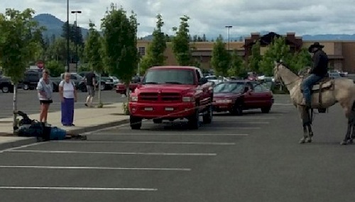 Chàng cao bồi không ngần ngại nhảy lên lưng ngựa, dùng dây thừng bắt tên trộm tại một bãi đỗ xe.