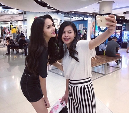 Tận dụng thời gian nghỉ ngơi vào buổi tối, Hương Giang đã tranh thủ đi shopping và ăn uống tại một trung tâm thương mại ở Pattaya. Điều thú vị là dù mới đăng quang và được BTC chuẩn bị xe riêng nhưng Hương Giang quyết định chọn xe Songthaew - loại phương tiện công cộng của người dân và khách du lịch để di chuyển.