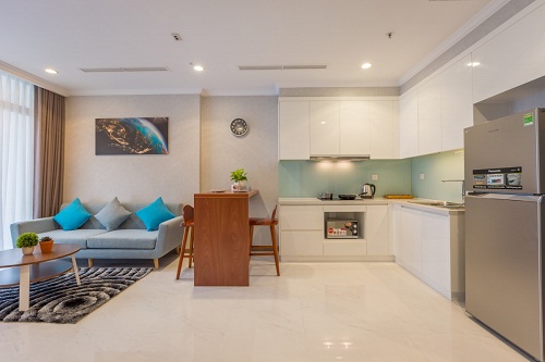 Căn hộ 1 phòng ngủ nằm trong khu chung cư cao cấp Vinhomes được trang trí theo lối hiện đại, đưa lại lối sống phong cách. Chắc hẳn đây sẽ là địa chỉ lý tưởng để bạn thoải mái tận hưởng trong khoảng thời gian lưu trú tại đây.