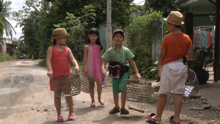 Sau khi nhận được nhiệm vụ, 4 em bé được chở bằng xe ba gác vào trong làng cùng với 4 chiếc giỏ trống để các bé xin được thức ăn có thể đựng vào. Các bé được giao nhiệm vụ đi xin: Trứng, nấm, đậu, thịt heo, thịt bò, thịt gà, rau củ kèm theo hình ảnh minh họa cho những món đồ để các bé có thể dễ dàng nhận biết.