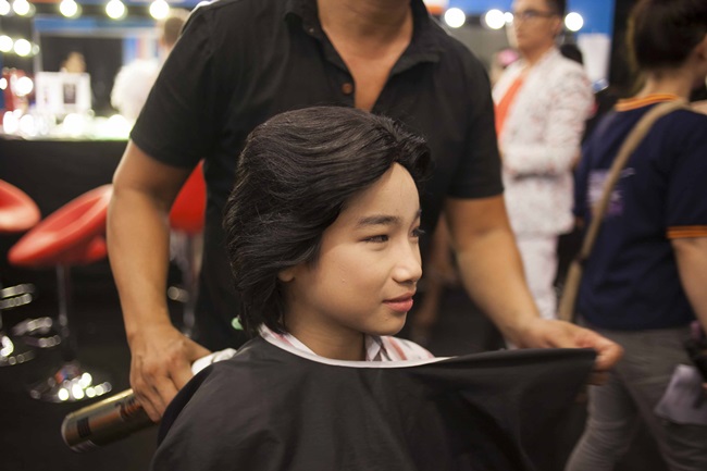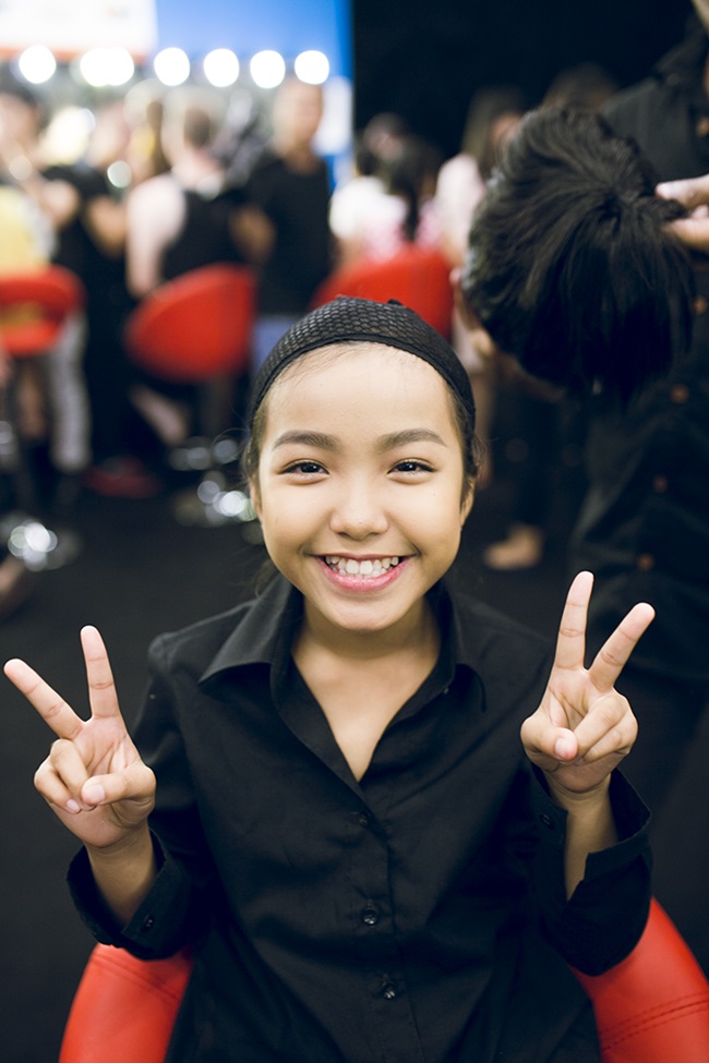 | Hậu trường hóa trang của Chí Thiện và bé Bảo An. |