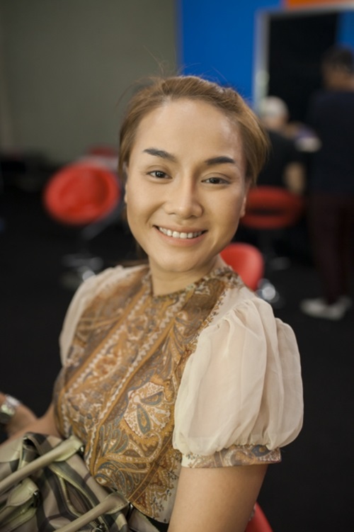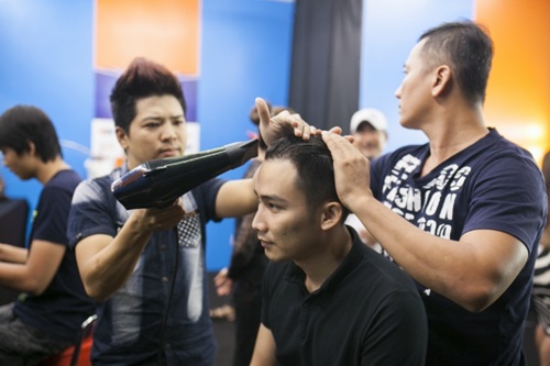 | Gia Huy-Thu Phượng trong hậu trường hóa trang. |