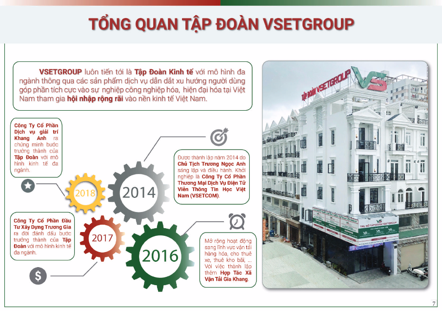 Tập đoàn Vsetgroup tiền than là Công ty CP Điện Tử Viễn Thông Tin Học Việt Nam được thành lập ngày 26/03/2014 luôn tục tăng trưởng và phát triển ứng tượng cho đến nay .