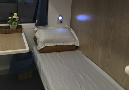 Toa xe giường nằm được làm bằng composite màu trắng với kiểu dáng thanh lịch - Ảnh: báo Giao thông |