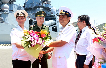 Tàu tuần dương của Hải quân Nga cập cảng Cam Ranh. Ảnh: Báo Tiền Phong |