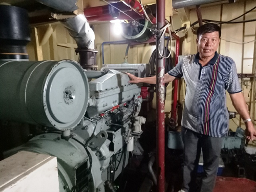 Máy phát điện trên tàu của ông Muộn thường xuyên bị hỏng - Ảnh: Hồng Đức/ Dân Việt |