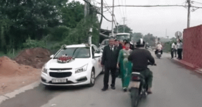 Theo đó, cảnh một đoàn người có lẽ của nhà trai sang nhà gái xin dâu trong đám cưới. Bất ngờ một tên cướp đi xe máy đến, lúc ngang qua người phụ nữ dẫn đầu đoàn đã thò tay giật dây chuyền trên cổ.