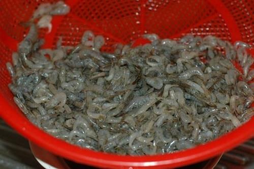 Bước 1: Tép rửa sạch, để ráo nước rồi xóc với 1 thìa café bột canh