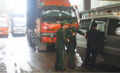 Cán bộ Bộ đội Biên phòng thực hiện nhiệm vụ kiểm tra, kiểm soát tại Trạm Biên phòng Cửa khẩu Quốc tế Cầu Treo. |