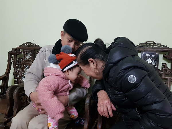 Ngay khi có quyết định nhận nuôi Bắp Cải, anh Bình đã đưa bé về Bắc Ninh, bà tỏ với bố mẹ và nhận được sự ủng hộ nhiệt tình. “Bố mẹ tôi hay hóm hỉnh đùa: “Cá vào ao ta là ta được…”. Tôi và Mười đón ông bà lên Hà Nội để ông bà tiện chăm cháu. Cả hai ông bà đều rất cưng Bắp Cải, con bé bây giờ còn quấn ông bà hơn cả hai bố…”, anh Bình bất giác bật cười.