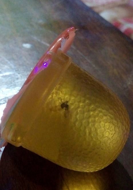 Tuy nhiên, vào chiều 24/3, khi đang bóc thạch cho đứa con trai 20 tháng tuổi, chị phát hiện trong một miếng thạch dứa có nguyên xác một con ruồi.