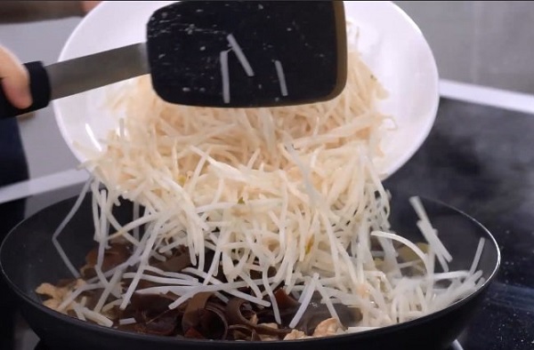 - Bước 5: Thêm mộc nhĩ và giá đỗ vào đảo đều, nêm thêm dầu hào, đường, muối và hạt tiêu. Xào cho các nguyên liệu thấm gia vị là được.