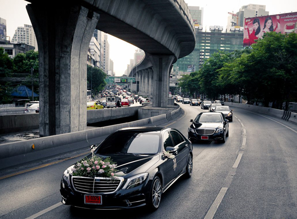 Theo tờ BangkokPost, trong buổi sáng ngày đính hôn, chú rể cùng khoảng 30 thành viên gia đình tới khách sạn cử hành nghi thức bằng 15 chiếc xe sang Mercedes S300. |