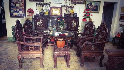 Bộ bàn uống nước đẹp mắt bằng gỗ quý, khảm ốc và trai - Ảnh: Vietnamnet |