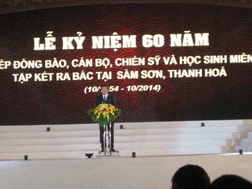 Lễ kỷ niệm 60 năm đón tiếp đồng bào, cán bộ, chiến sĩ và học sinh miền Nam tập kết ra Bắc tại Sầm Sơn - Thanh Hóa khắc ghi một sự kiện lịch sử quan trọng trong sự nghiệp cách mạng của Đảng ta, đất nước ta. Tự hào với truyền thống đại đoàn kết toàn dân tộc, ý chí thống nhất Tổ quốc của nhân dân Việt Nam trong suốt hàng nghìn năm lịch sử, toàn Đảng, toàn dân nguyện làm hết sức mình xây dựng và bảo vệ vững chắc Tổ quốc Việt Nam.